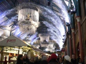 Covent Garden Market – in der alten Markthalle, wo früher Blumen, Obst und Gemüse verkauft wurde, befinden sich heute sehr viele kleine Gaststätten und Lädchen. Für mich sah die Markthalle wie ein Eispalast aus.