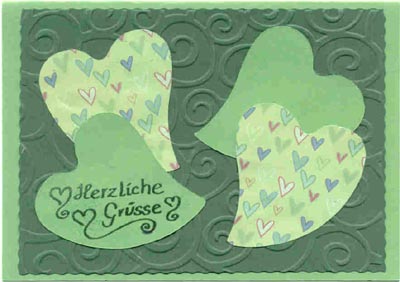 Karten – gestaltet mit Hilfe von Fiskars Schneideschablonen Veröffentlicht am 4. Mai 2008 von ullasleseecke Fiskars bietet ein großes Sortiment Bastelwerkzeuge, die auch zur Kartengestaltung genutzt werden können. Hier habe ich die Schneideschablonen genommen: Zum Kartenthema SchnörkelDie Herzen haben es mir ganz besonders angetan: Oder einfach zum Kartenthema Kreise und Ringe Teilen mit: Klicke, um auf X zu teilen (Wird in neuem Fenster geöffnet) X Klick, um auf Facebook zu teilen (Wird in neuem Fenster geöffnet) Facebook Gefällt mir Wird geladen … Ähnliche Beiträge