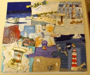 Im vorigen Jahr habe ich an einer Puzzletauschaktion teilgenommen, ich hatte mir das Thema \“Maritim\“ ausgesucht und von den anderen Tteilnehmern wurden meine Teile entsprechend gestaltet, hier ist mein fertiges Puzzle zu sehen:
