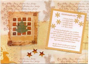 Weihnachten kommt immer soooo plötzlich und dann gerät man in Streß. Damit mir das nicht passiert, habe ich jetzt schon mal die meisten Backbuchseiten gestaltet. Außerdem war das Wetter neulich noch so winterlich, im Sommer würde mir das bestimmt schwerer fallen.