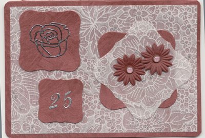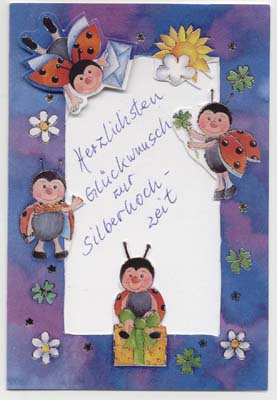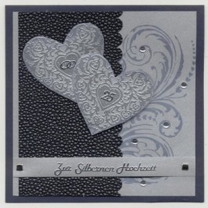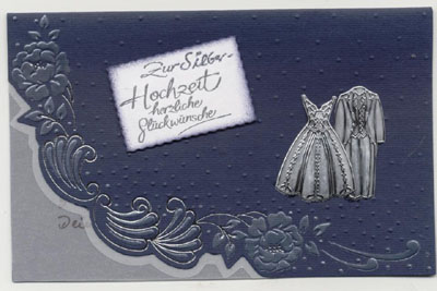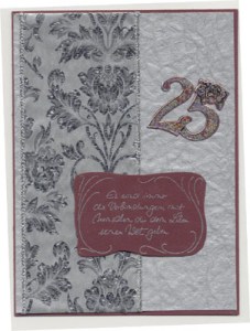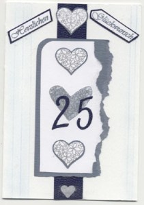 Die Zeit vergeht wirklich im Flug. Im Mai diesen Jahres haben mein Mann und ich silberne Hochzeit feiern können. Den Tag haben wir ja auf Kreta verbracht, dieser Urlaub war sozusagen unser Geschenk an uns. Und als wir wieder nach Hause kam, fanden wir eine Flut wunderschöner Karten vor, die gebastelten möchte ich hier gerne zeigen: