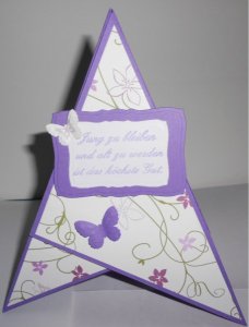 Mal eine ganz andere Kartenform Veröffentlicht am 11. Januar 2012 von ullasleseecke Im Forum wurde vorgeschlagen mal eine Dreieckskarte zu machen, hier ist meine Ausfertigung Teilen mit: Klicke, um auf X zu teilen (Wird in neuem Fenster geöffnet) X Klick, um auf Facebook zu teilen (Wird in neuem Fenster geöffnet) Facebook Gefällt mir Wird geladen … Ähnliche Beiträge