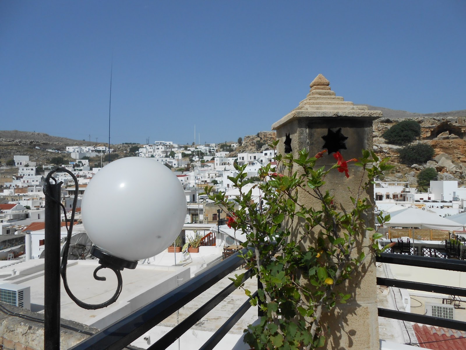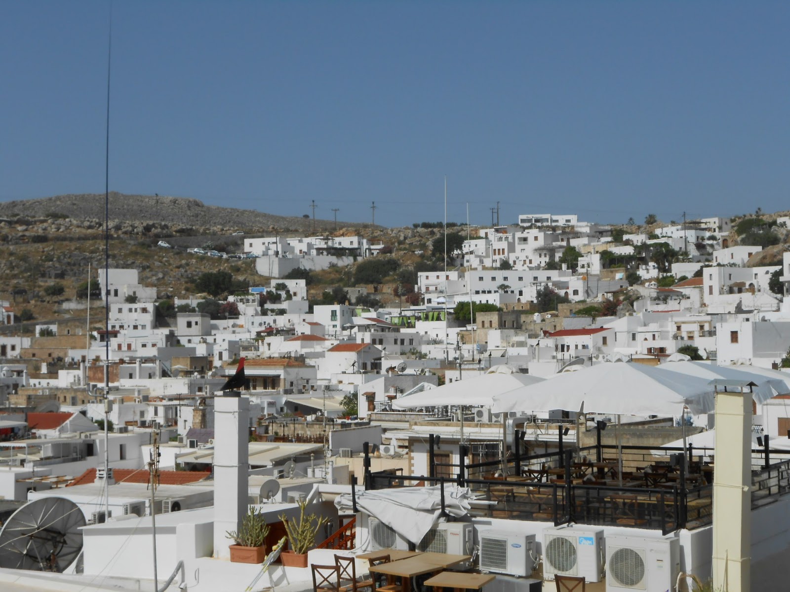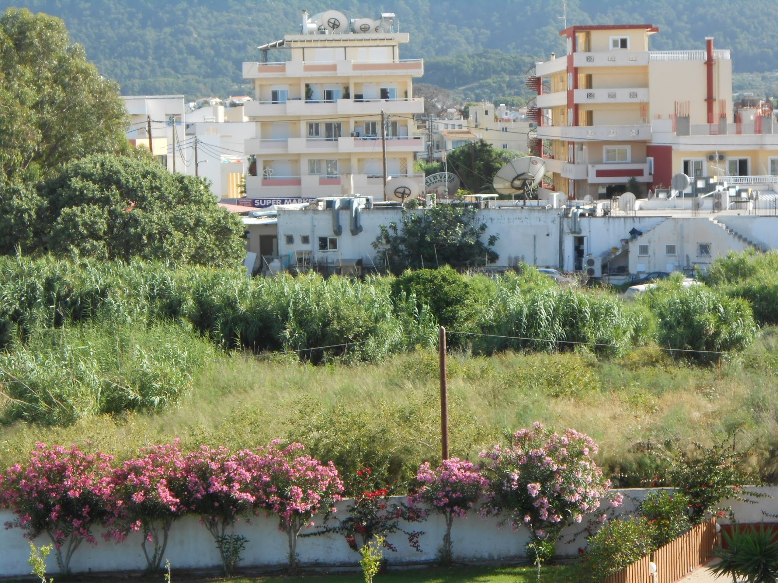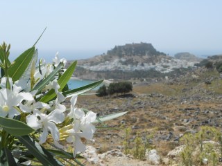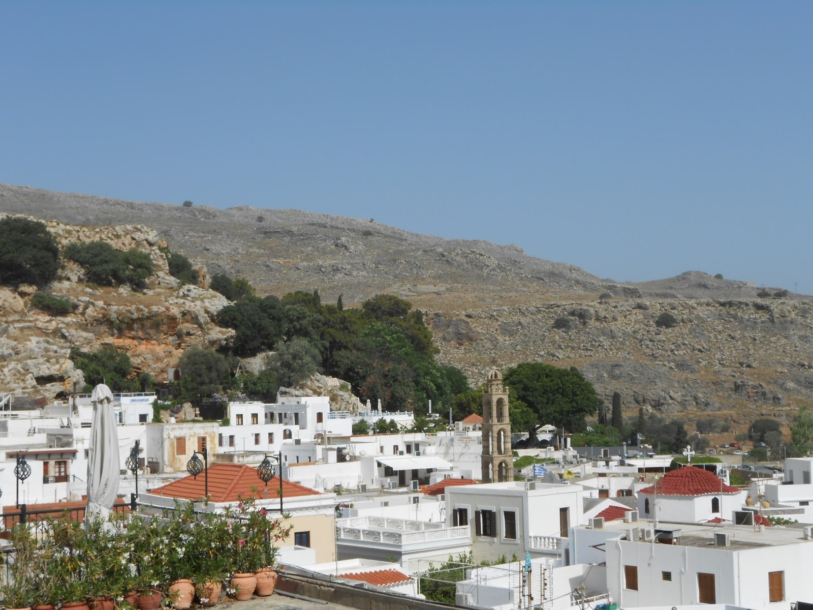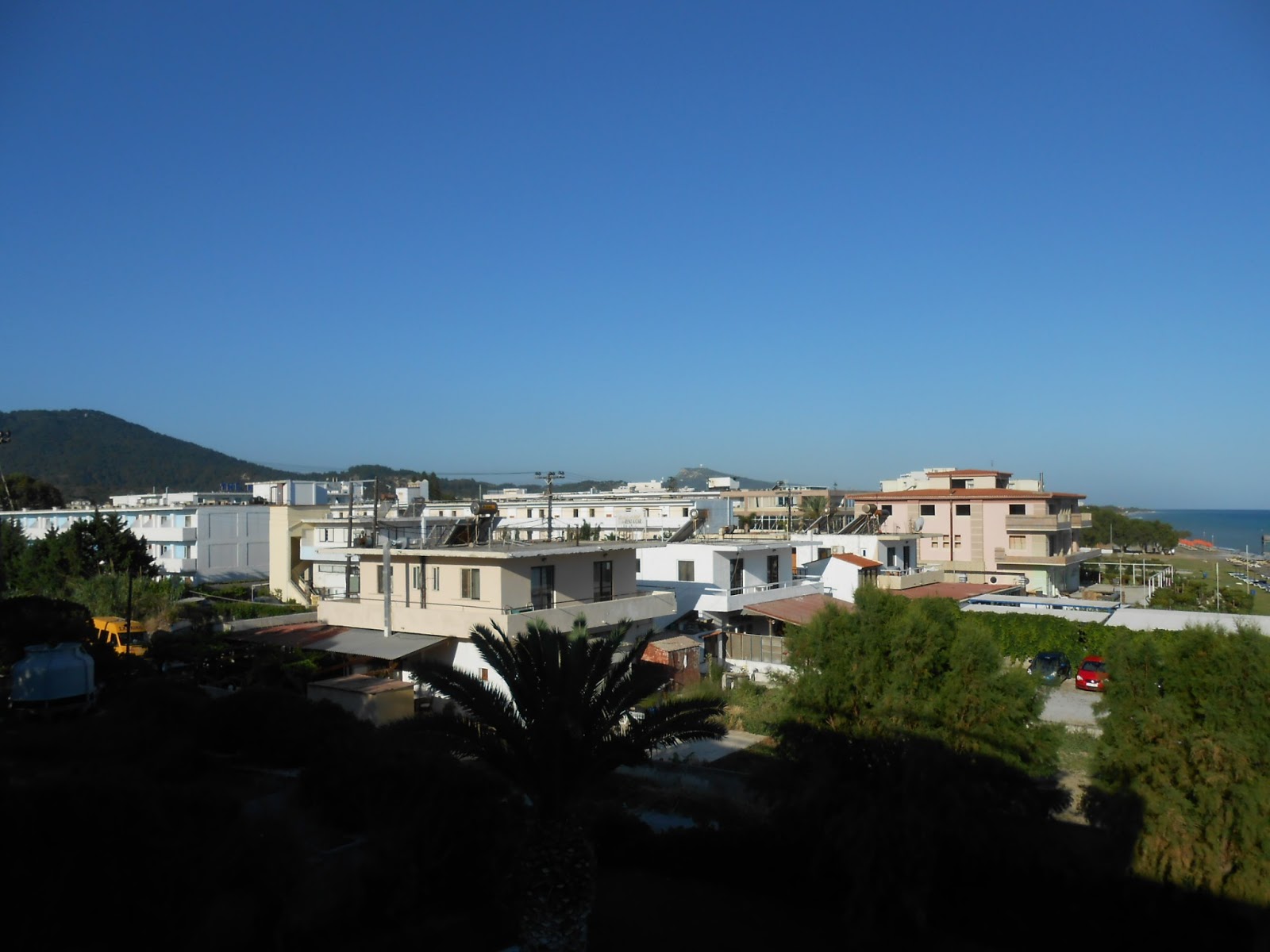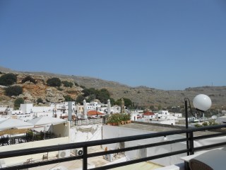 Blick vom Balkon, links ist der Berg Filerimos zu sehen