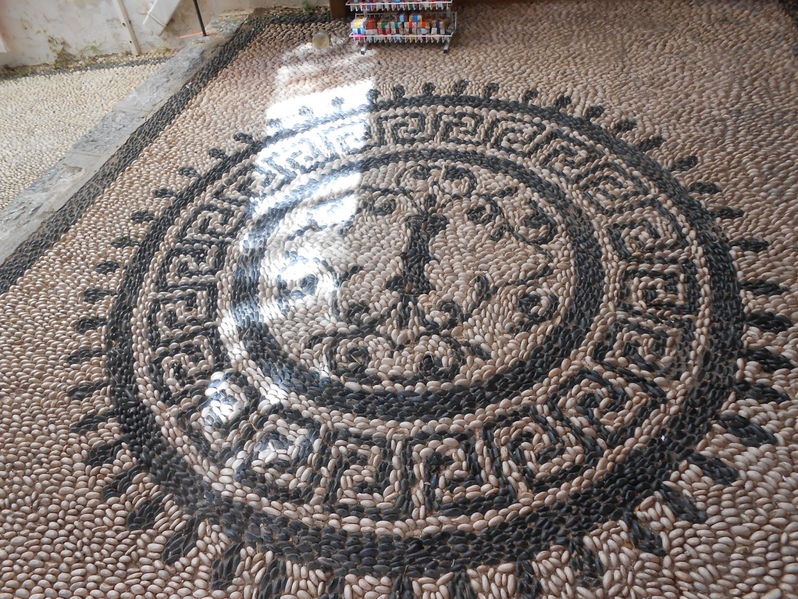 hier ist der gepflasterte Platz mit den schwarzen