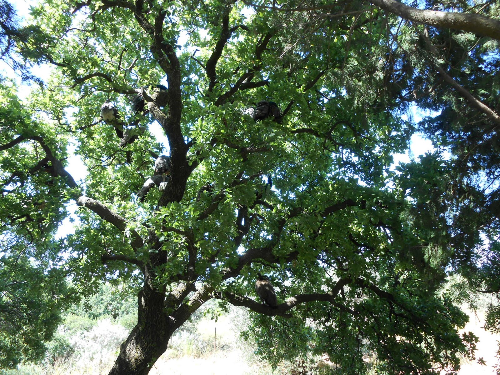 na, wer entdeckt sie, die Pfauen im Baum