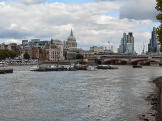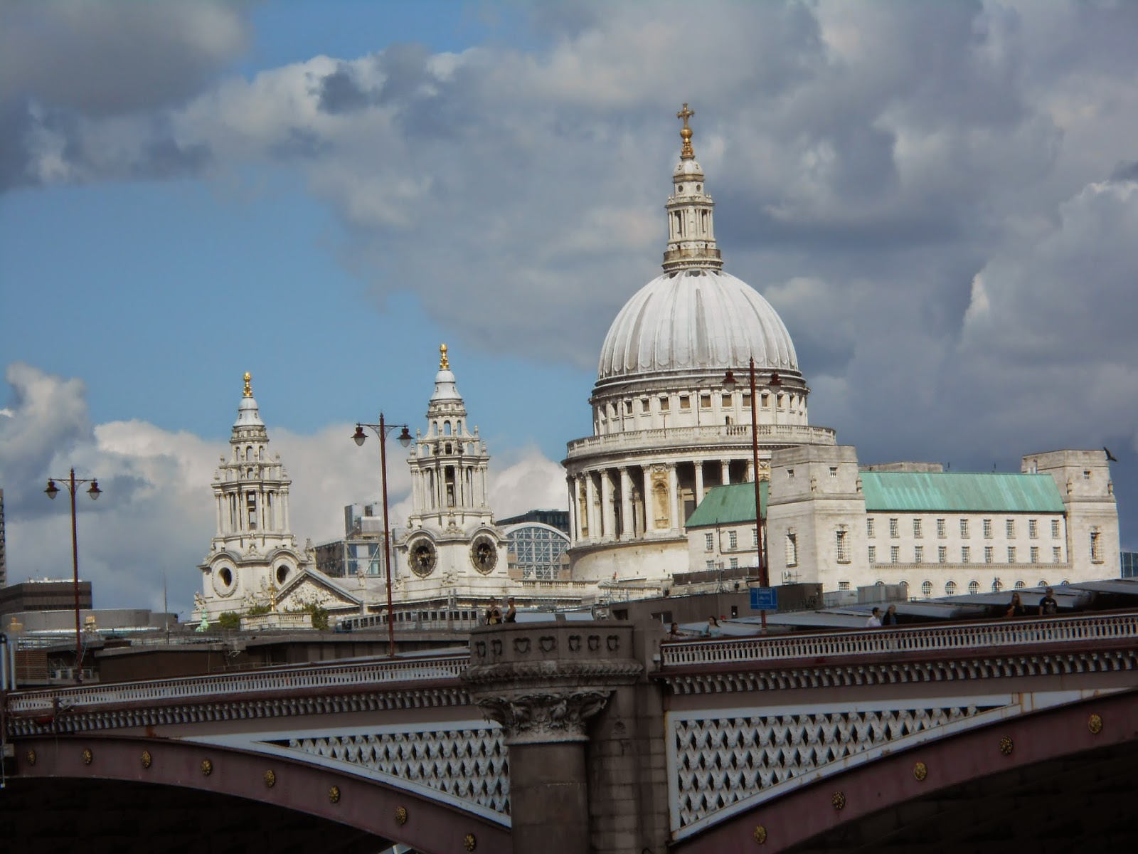 Rechts ist die Kuppel der St. Pauls Cathedral