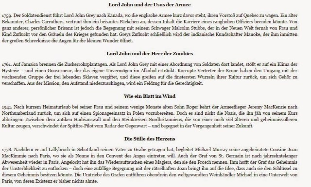 Obwohl ich im Vorfeld dachte, schade, ich hätte viel lieber etwas über die Familie von Jamie und Claire gelesen, haben mich die vier Geschichten doch gefesselt.