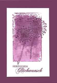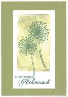 Im Moment brauche ich für mein Hobby Lesen sehr viel Zeit, aber zwischendurch schaffe ich es dann doch noch, ein paar Karten zu machen. Hier hat es mir eindeutig der Stempel mit den Pusteblumen angetan. Mal wieder, kann ich sagen, denn es sind nicht die ersten Karten mit dem Motiv und werden mit Sicherheit auch nicht die letzten sein