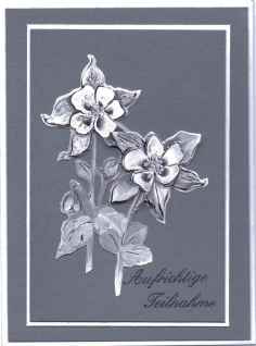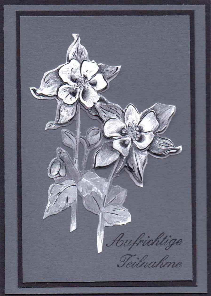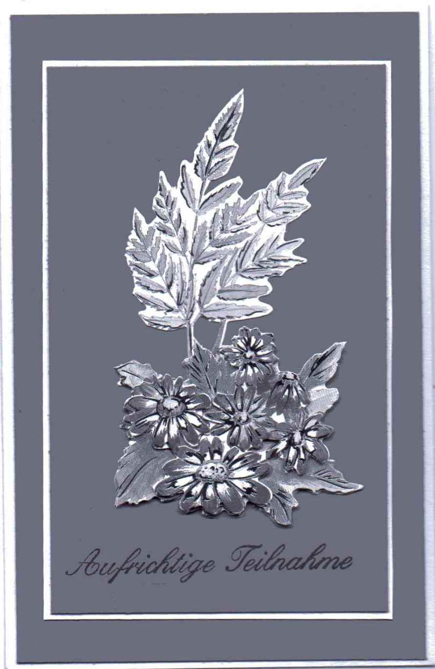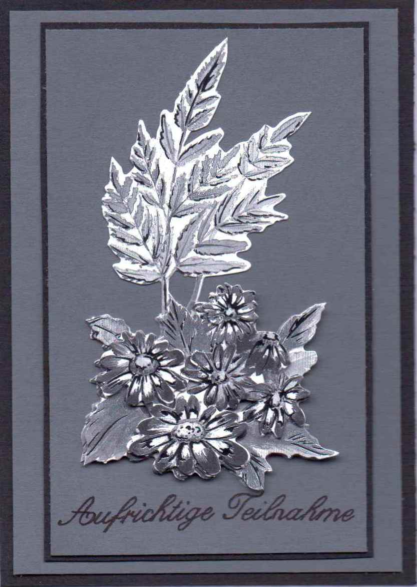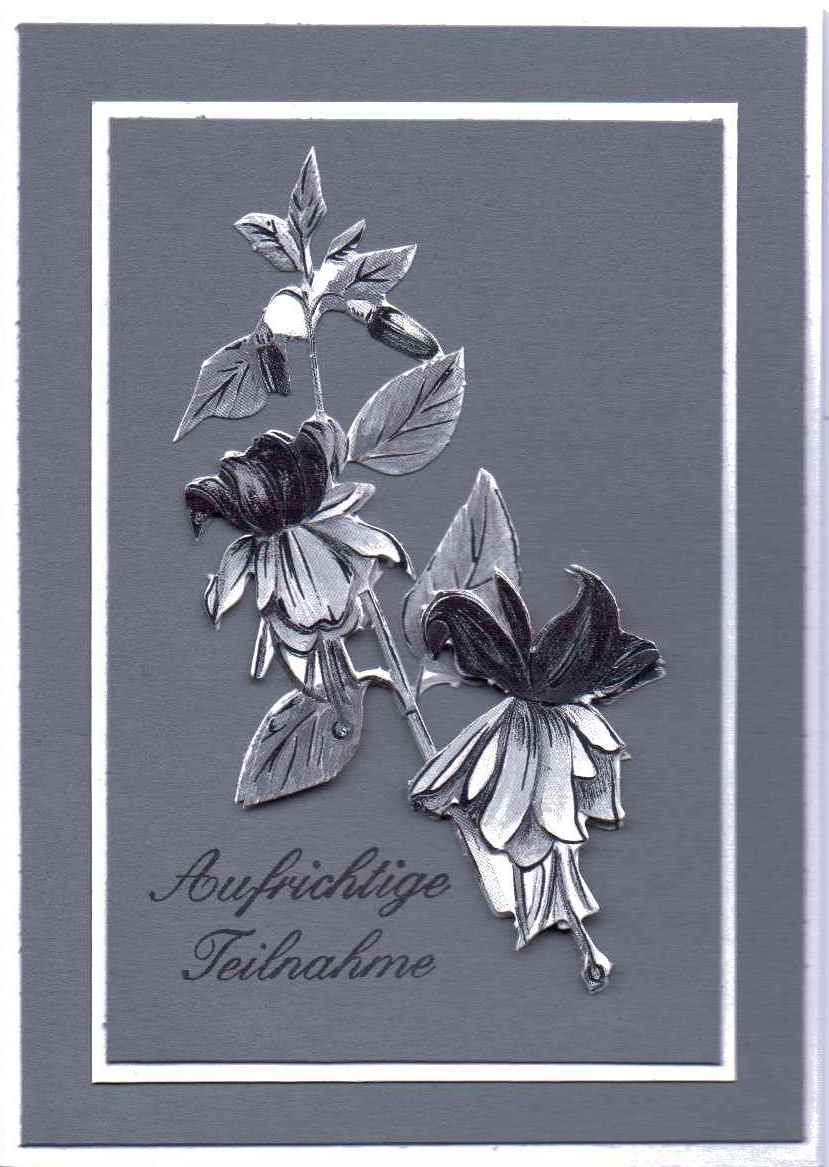 Trauerkarten werden leider auch immer wieder benötigt. Da ich es mir angewöhnt habe, alle Karten, die ich schreibe, selber herzustellen, habe ich mir einen Vorrat angelegt. Man kann es auch als eine Art der Trauerbewältigung betrachten.