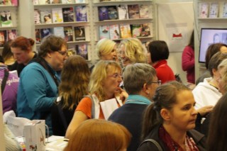 Bevor ich zu meinen nächsten Verabredungen mit Autorinnen gehen konnte, hatte ich die Gelegenheit mich ein bisschen in den Hallen umzusehen. Das hatte ich an beiden Tagen immer wieder gemacht, denn ich wollte nicht einfach nur von Termin zu Termin düsen. Ich wollte auch die Gelegenheit nutzen \“meine\“ Ansprechpartner bei den Verlagen kurz zu sprechen. Bei dotbooks hatte ich wenig Erfolg. Bei blanvalet und Mira Taschenbuch war ich erfolgreicher. An anderen Ständen großer Verlage war ebenfalls sehr viel los und ich hatte nicht die Zeit lange nach meinen Ansprechpartnern zu suchen.