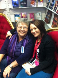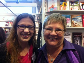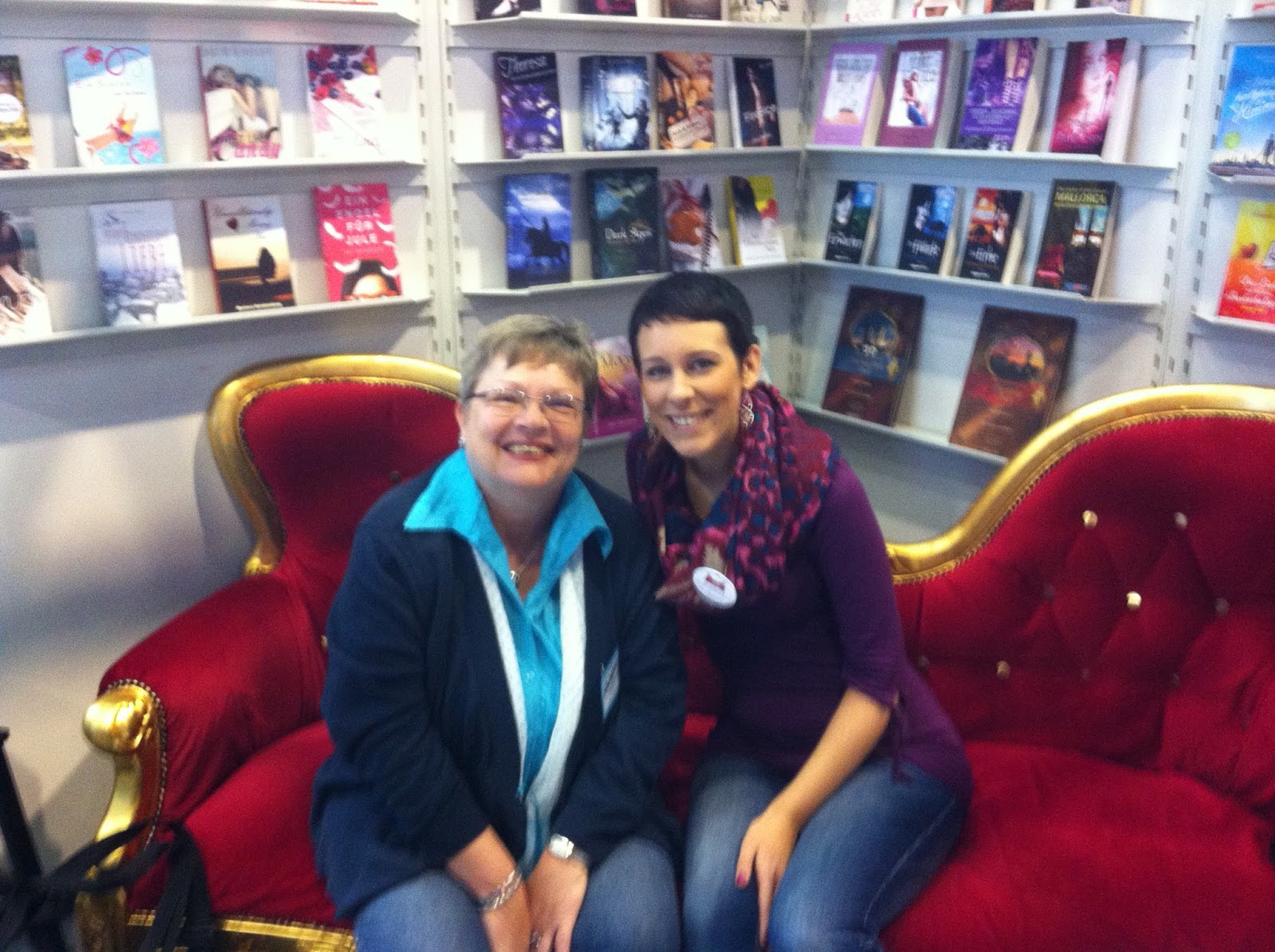 Bettina Kiraly. Sie kam gerade aus Österreich und ist sofort zur Buchmesse geeilt. Wir beide hatten es schon bedauert, dass wir uns wohl nicht kennen lernen könnten. Durch eine Blogtour zu ihrem Buch hatten wir beide einen sehr intensiven Kontakt. Bettina Kiraly veröffentlicht auch unter ihrem Pseudonym