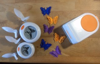 Das Angebot von Fiskars ist sehr groß und deshalb habe ich bei den Schmetterlingen gleichzeitig auch den Stanzer für komplizierte Formen eingesetzt.