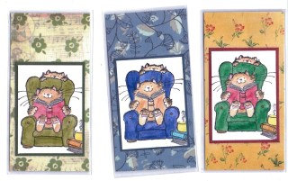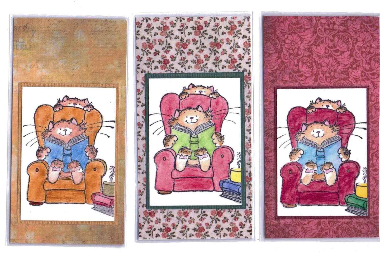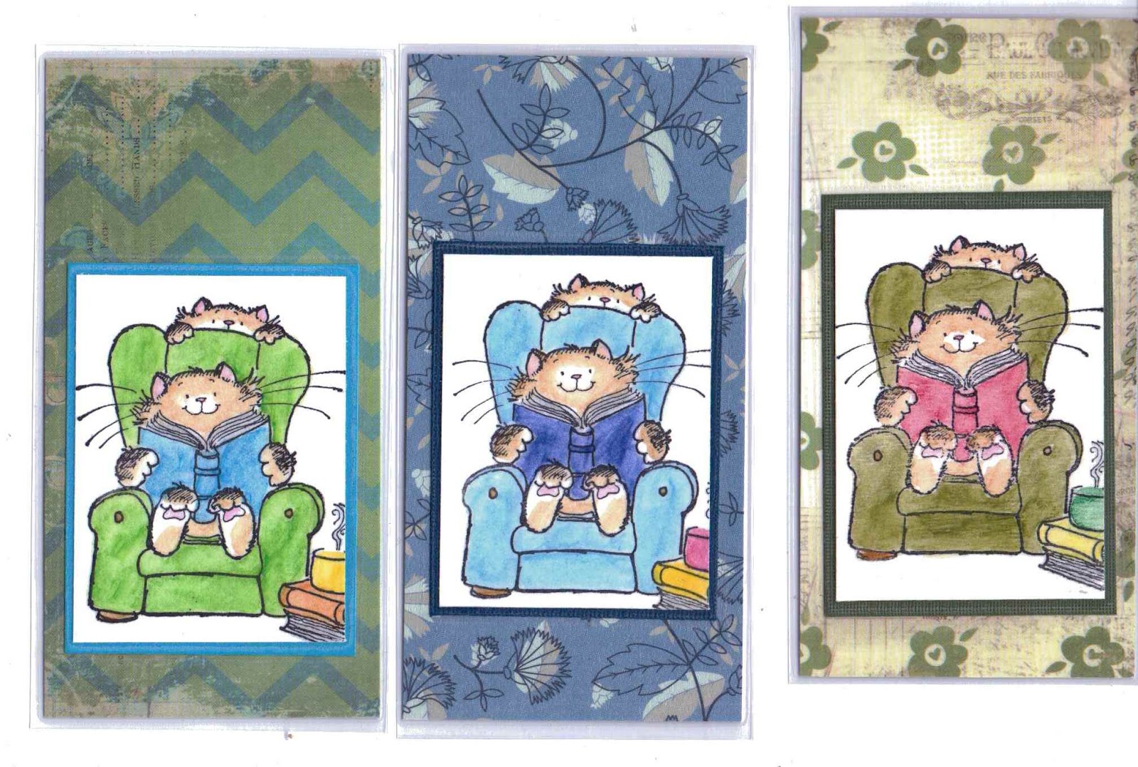 Da ich zu einem Treffen wollte, wo ich Autoren, Leser und Blogger wiedersehe oder kennen lerne, wollte ich kleine Geschenke anfertigen. Da liegt es doch nahe, dass ich Lesezeichen mit dem beliebten Stempel von Penny Black anfertige und für die Organisatorin gab es zusätzlich ein kleines Büchlein