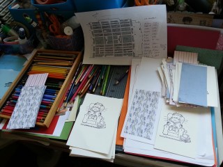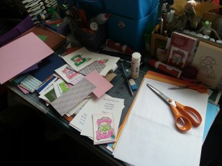 Manchmal sieht es schon etwas wüst auf meinem Basteltisch aus…..