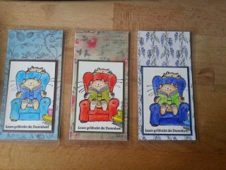 Und hier seht Ihr jetzt 3 fertig gestellte Lesezeichen,