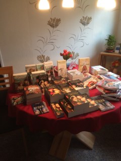 Die Zeit wurde aber auch genutzt, um sich die vielen Bücher anzusehen. Da ich alle Bücher gelesen hatte, konnte ich auch die eine oder andere Frage beantworten. Es ist klar, dass Bücher auch später noch gekauft werden könnten, aber wann hatte man die Gelegenheit sich ein Buch von der Autorin signieren zu lassen. Obwohl es die Möglichkeit gibt über ihre Homepage Bücher mit einer gewünschten Signatur bei ihr zu bestellen. Aber es ist doch wirklich etwas anderes, wenn das Buch bei der Autorin persönlich geholt werden kann. Zeit für ein paar Worte hatte Petra Schier ja auch für jeden gehabt.
