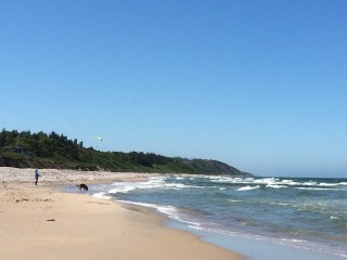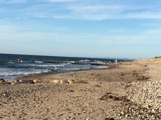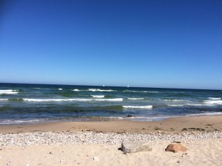 Strand hinter Gilleleje auf dem Weg nach Helsingör, in der Ferne ist die schwedische Küste zu sehen.