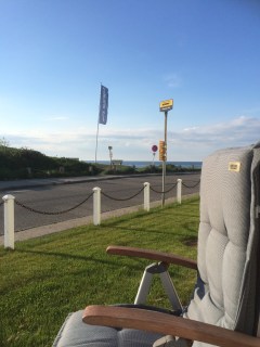 Abends auf unserer kleinen Terrasse, es gibt immer etwas zu sehen. Die Bushaltestelle ist direkt am Haus, der Weg zum Wasser nicht weit