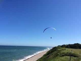 ein letzter Strandspaziergang und in der Ferne ist ein Paragleiter z usehen