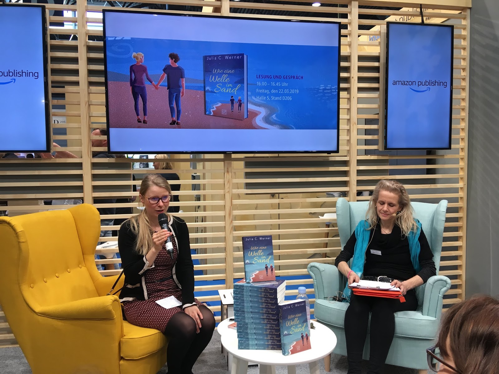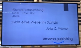 Bisher hatte ich es kein einziges Mal geschafft und am Stand von Amazon Publishing einer Lesung zu hören können. Nun hatte ich aber gleich zwei Lesungen, die für den Tag den krönenden Abschluss bilden sollten.