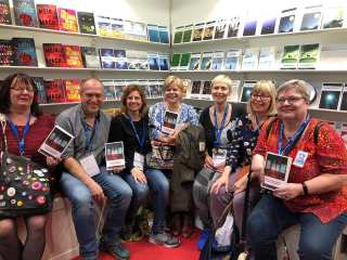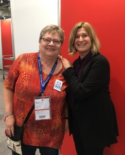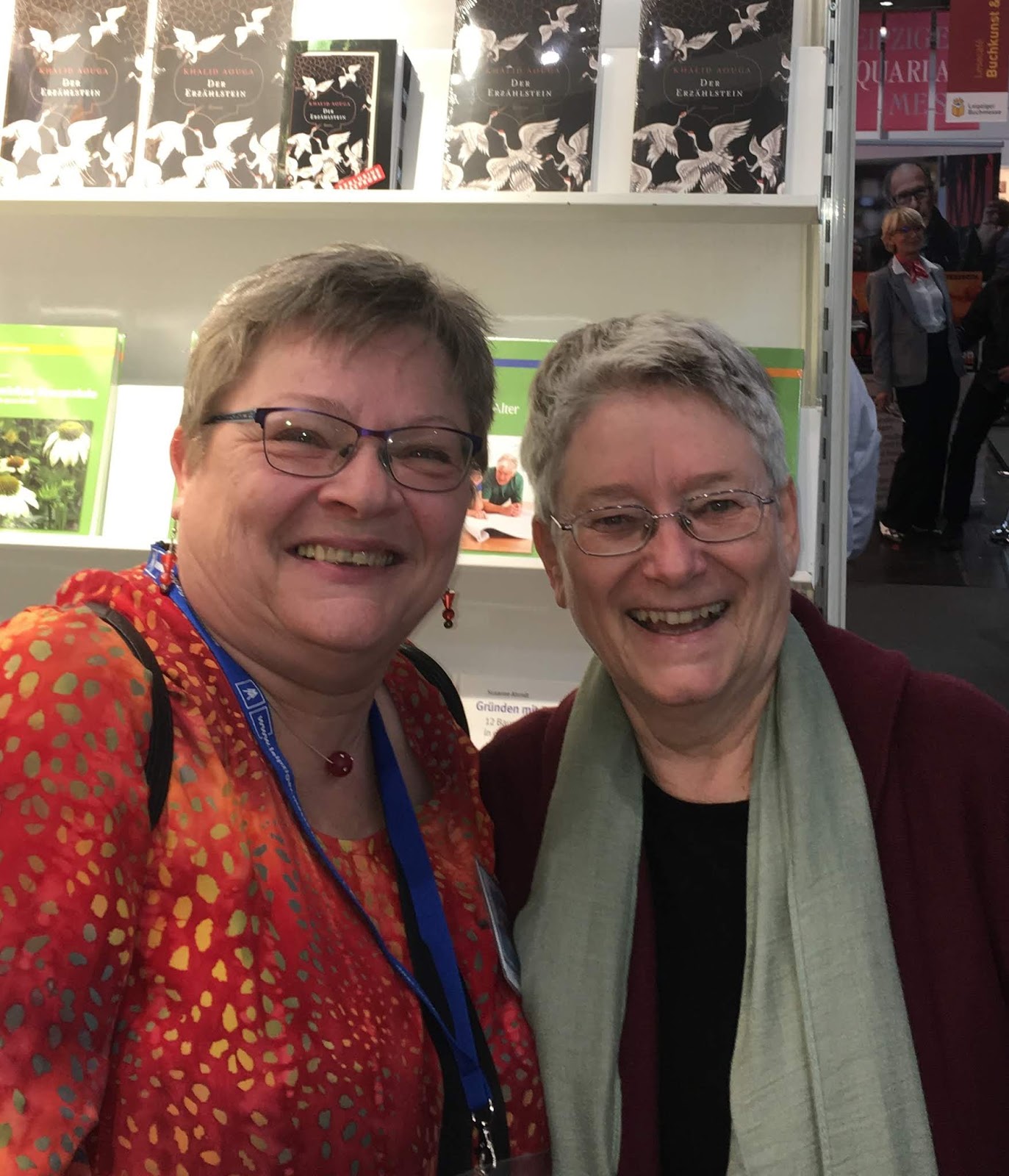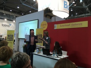 Das Treffen fand in Halle 5 statt und für mein nächstes musste ich mich wieder in Halle 3 begeben. Ich wollte endlich Carmen Mayer kennen lernen, die ich bisher nur durch einen regelmäßigen Austauch über gelesene Bücher kannte. Im vergangenen Jahr durfte ich als Jurymitglied für den HOMER Literaturpreis sehr viele Bücher lesen. Carmen Mayer ist jetzt diejenige, die schon weiß, wer den Preis in diesem Jahr gewinnen wird, denn sie hat die Bewertungen aller Jurymitglieder erhalten und durfte alles auswerten. Aber ich kann warten, bis November, dann werde ich es ebenfalls erfahren.