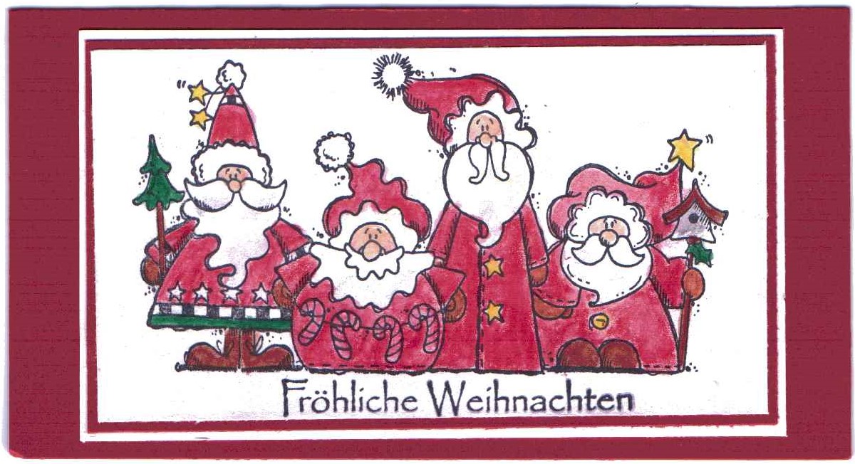 Bei diesem Advent-TAG-Tausch werden nun 24 Schildchen gewerkelt, die Größe ist vorgegeben. Diese 24 Kärtchen werden an eine Person geschickt, die so zu sagen die Sammel- und Verteilstelle inne hat. Je nachdem, wie viele Personen sich beteiligen, kann da ganz schön viel Post ankommen. In diesem Fall waren wir sieben Teilnehmerinnen. Ich habe also Post von 6 erhalten und diese verteilt und wieder zurück geschickt. So erhielt jede von den anderen jeweils 4 TAGs. Jeder kann zu Hause seine Kärtchen aufhängen, hinstellen oder so und jeden Tag einen Umschlag öffnen, denn natürlich wurden die TAGs in Umschläge gesteckt, die ebenfalls wunderschön gestaltet wurden. Der Anblick von 24 Umschlägen im Advent, die darauf warten, geöffnet zu werden, erfreut mich jedes Jahr wieder aufs neue. Achja, für die Rückseite lässt sich jede auch etwas einfallen, von einem liebevollen Gruß bis zu Gedichten ist alles dabei. und nun möchte ich Euch die 24 Stück zeigen, die ich in diesem Jahr gestaltet habe. Ich weiß selber nicht, wer welche erhalten hat und so ist die Überraschung jeden Tag groß.