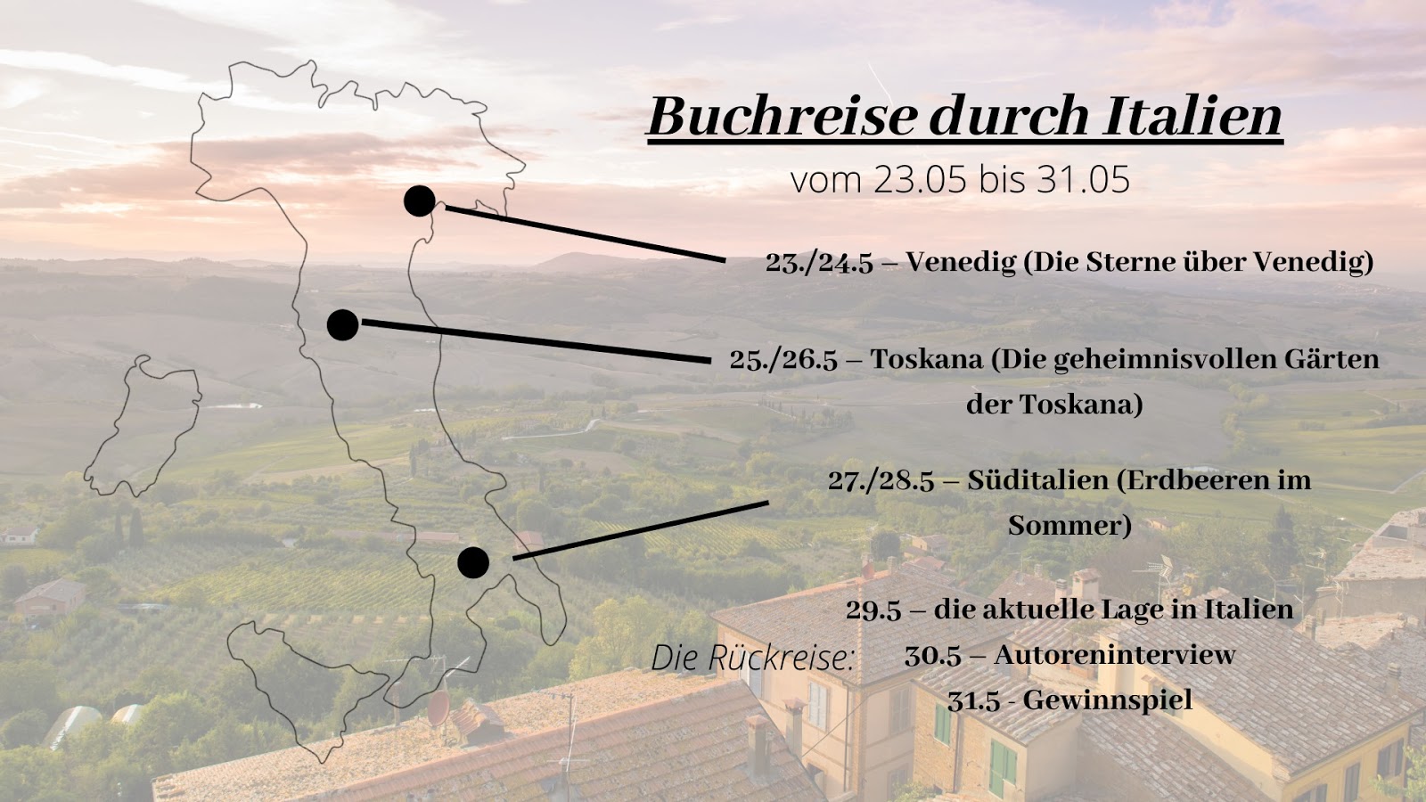 Anja Saskia Beyer ermöglicht uns Lesern mit ihren Büchern, dass wir durch Italien reisen können. Sie nimmt uns mit in schöne Gegenden, sorgt dafür, dass zumindest mir, das Wasser im Munde zusammenläuft 😉 und erzählt uns spannende Geschichten aus der Vergangenheit und Gegenwart. Ich freue mich, dass ich an dieser Blogtour teilnehmen darf. Hier kommt nun mein erster Beitrag: