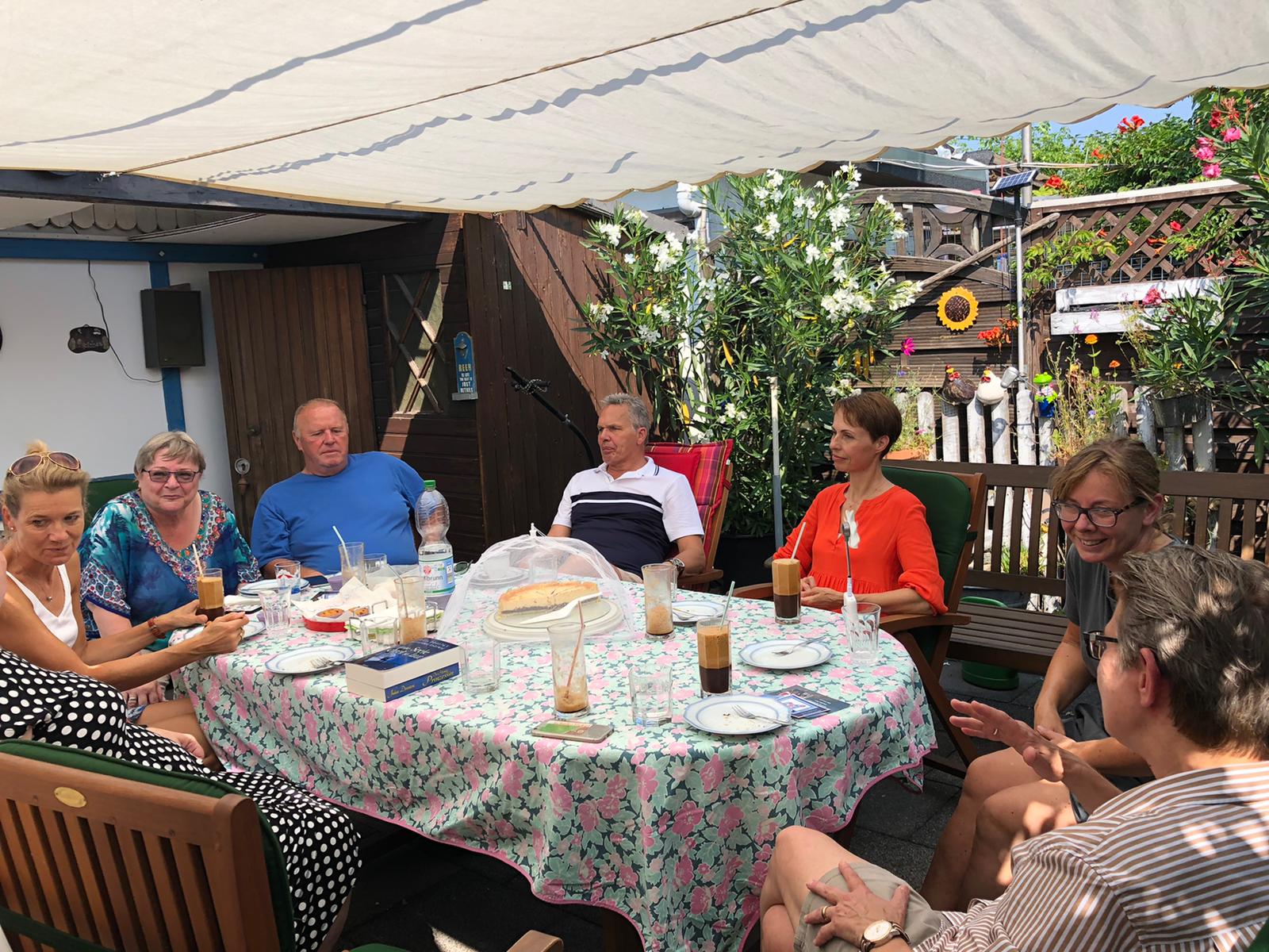 Wie es halt so ist, wenn sich Leute mit bestimmten Interessen treffen, steht das Thema Buch im Vordergrund, aber auch ein privates Gespräch kam nicht zu kurz. So war es für alle ein entspannter und interessanter Nachmittag.