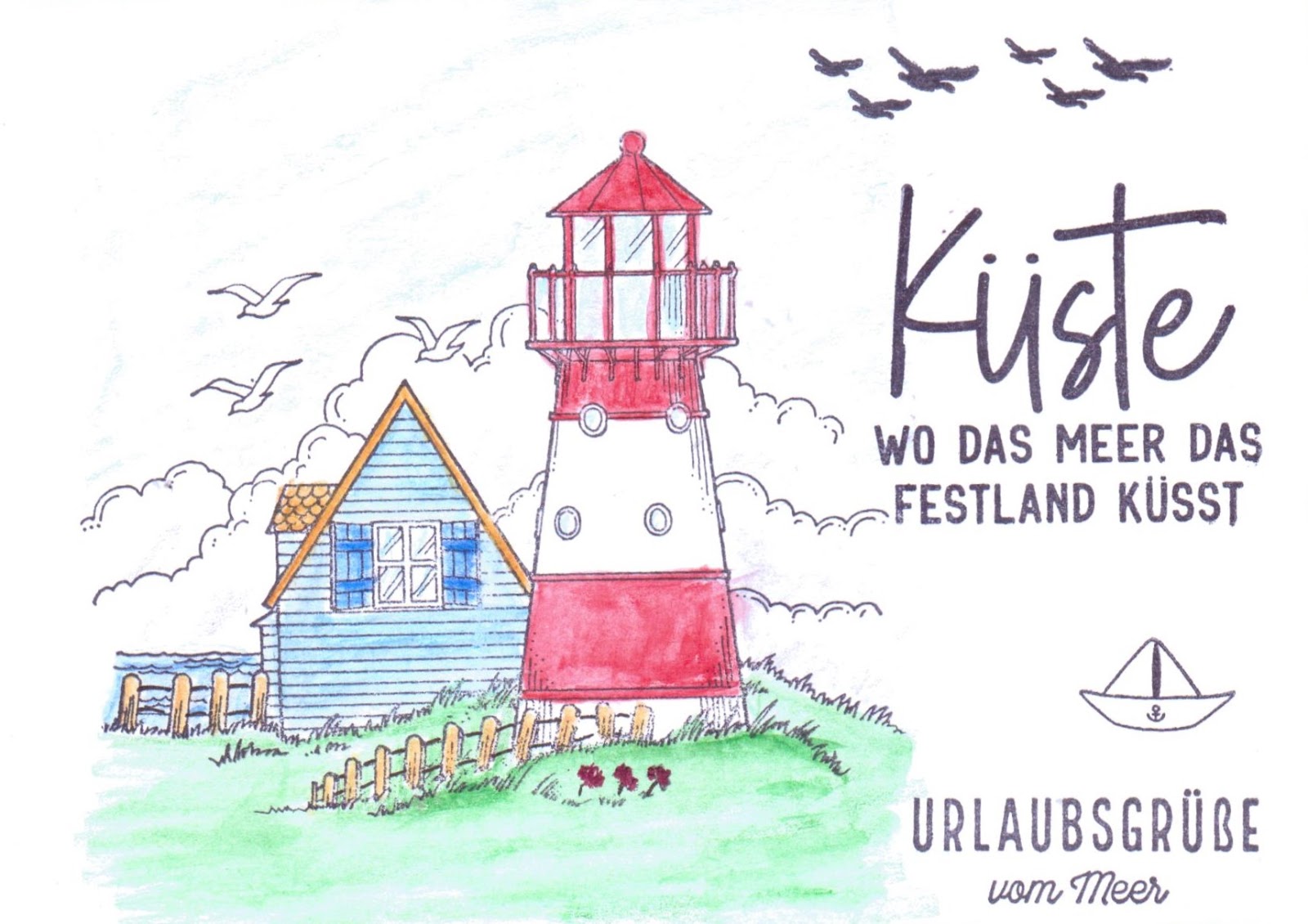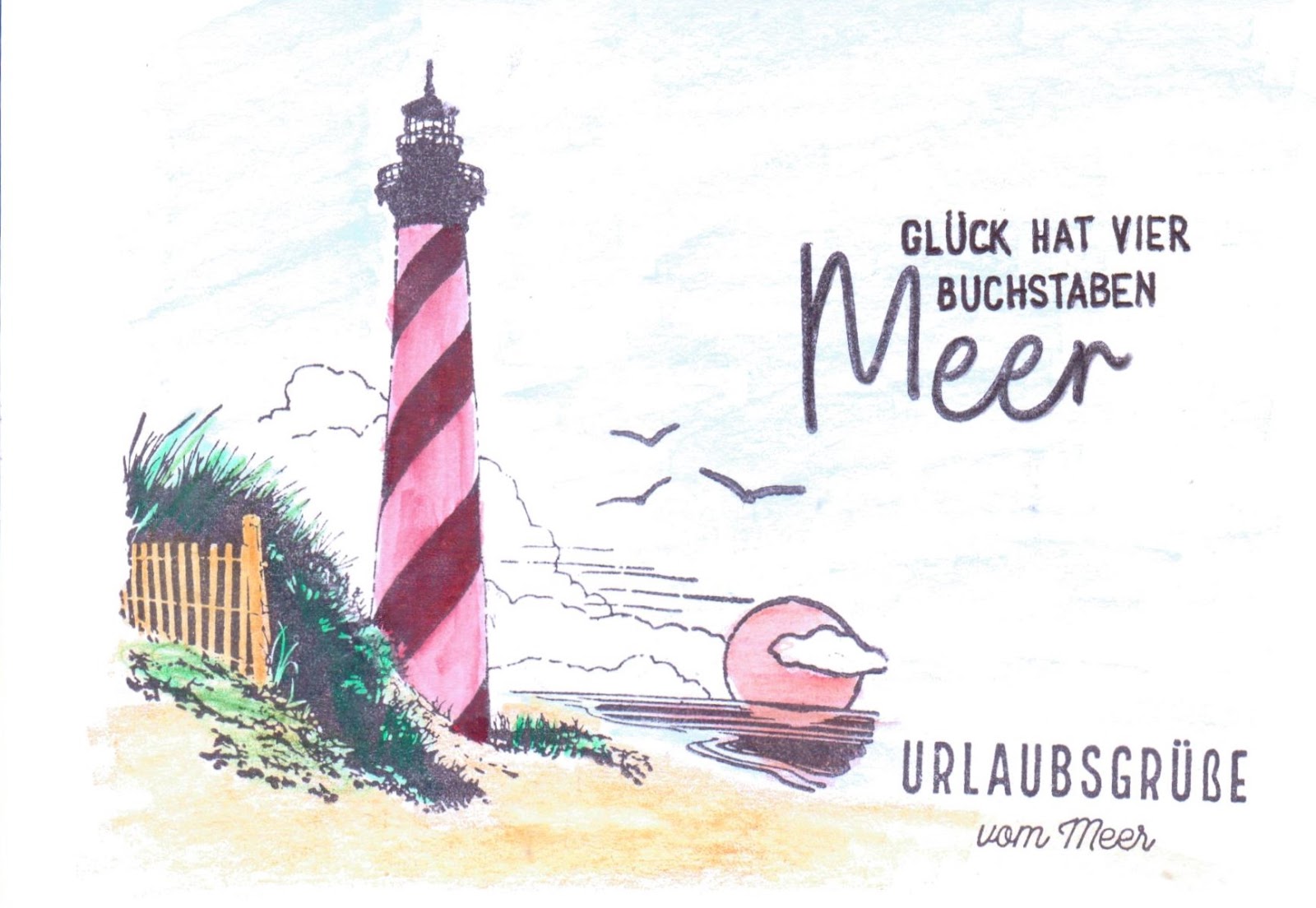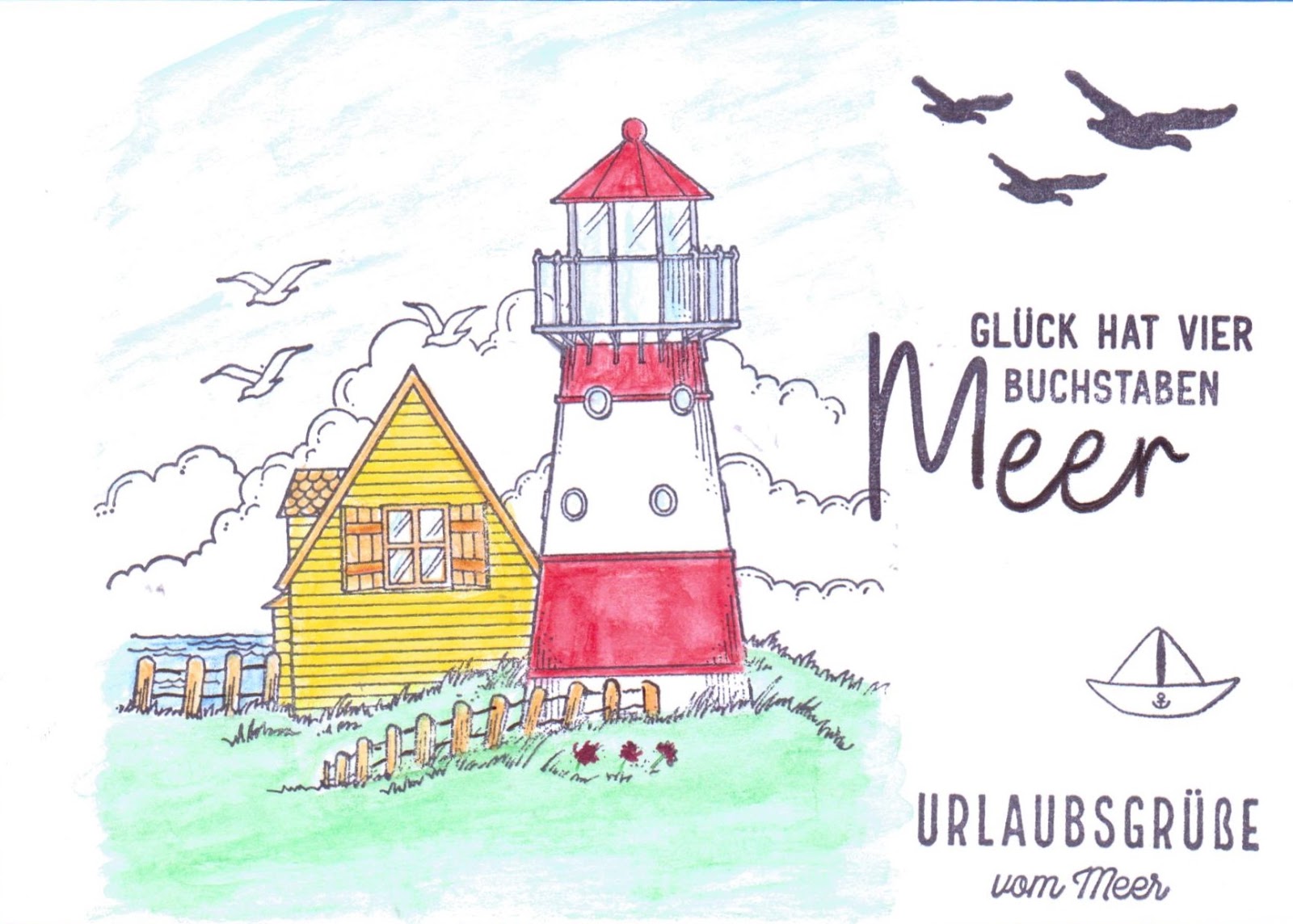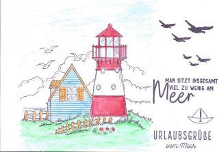 Postkarten Veröffentlicht am 3. September 2020 von ullasleseecke Ich besitze so viele maritime Stempel und hatte neulich die Idee, dass ich doch mal Urlaubspostkarten damit machen könnte. Gedacht – getan. Hier ist das Ergebnis meiner Fleißarbeit: Teilen mit: Auf X teilen (Wird in neuem Fenster geöffnet) X Auf Facebook teilen (Wird in neuem Fenster geöffnet) Facebook Gefällt mir Wird geladen … Ähnliche Beiträge