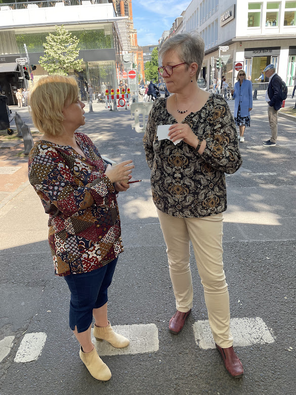 Zuvor traf ich mich am Hauptbahnhof bereits mit Isabella Archan und plaudernd gingen wir zur Kö. Eine Autorin und eine Buchbloggerin haben sich immer viel zu erzählen. Aber auch die Kollegen führten vorher anscheinend interessante Gespräche. Ich habe nicht gelauscht, aber sie dabei einfach fotografiert. Ob sie wohl neue Morde aushecken???