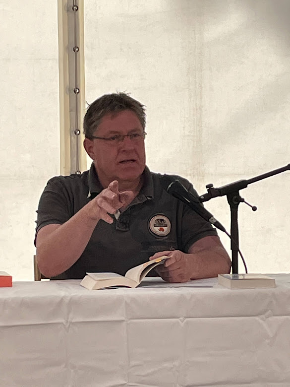 Falls nun jemand doch noch Zweifel hat, dass es eine gefährliche Veranstaltung war, weil diese Pistole eine wichtige Rolle spielte, den kann ich beruhigen. Beim SYNDIKAT dürfen Autorinnen und Autoren oft aus ihren Büchern lesen, bis der Schuss fällt. Natürlich war es ein Schreckschuss, der nach zehn Minuten das Lesen beendete.