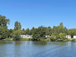 Der Platz liegt direkt am Main und auf beiden Seiten gibt es sehr gute Radwege, in wenigen Minuten gelangt man in den Ort. Gerne hätten wir dort etwas zu Mittag gegessen, waren aber zu spät. Es gab in den Restaurants nur bis 14 Uhr Mittagstisch. Ab 17 Uhr hätten wir erst wieder die Möglichkeit gehabt, eine warme Mahlzeit zu uns zu nehmen. Aber zu unserer Freude gab es frischen Zwetschgenkuchen, der uns gut geschmeckt hat. Danach haben wir mit den Rädern ein bisschen die Gegend erkundet und anschließend eine gemütliche Zeit am Wohnmobil verbracht, außerdem waren wir von der vorherigen Nacht und der Fahrt doch sehr müde.