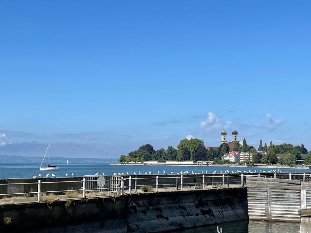 Der Blick von oben ist natürlich toll. Auf der anderen Seite des Sees befindet sich Konstanz und auch die Insel Mainau ist nicht weit entfernt. Allerdings haben wir uns auch diese Fahrt erspart und uns an dem Anblick dieses Gartens erfreut.