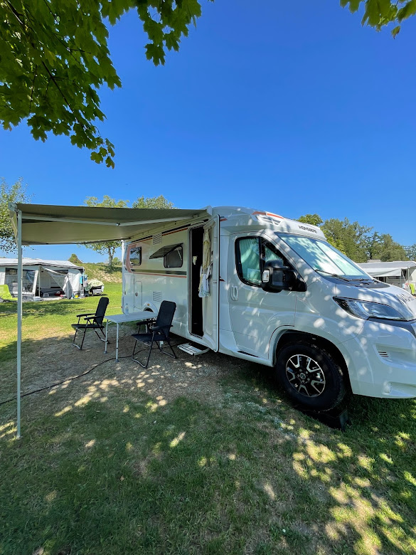 Nun ging es weiter, eine Weile fuhren wir noch am Bodensee entlang und dann quer durch den Schwarzwald Richtung Colmar. Dort wollten wir einen Wohnmobilplatz ansteuern, über den wir im Vorfeld einiges gelesen hatten. Unter anderem, dass die Ausstattung nicht sehr gut und er meist mittags bereits voll belegt ist. Wir sollten allerdings angenehm überrascht werden. Der Platz war sehr groß und wurde in der letzten Zeit wohl erneuert. So hatten wir Strom, aber leider keine Toiletten.