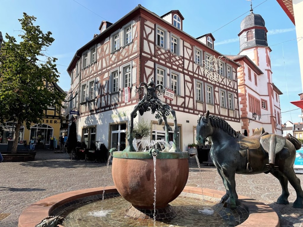 Der Rossmarktbrunnen und die schönen alten Fachwerkhäuser ringsherum