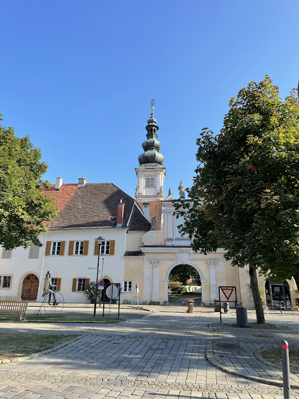Ich war noch nie so glücklich, dass wir seit Jahren eBikes fahren. Denn die Fahrt nach Retz im Weinviertel stellte uns vor großen Herausforderungen. Ich hatte nicht damit gerechnet, dass es so extrem rauf und runter ging, vor allem kam es oft überraschend. Hatten wir gerade eine Straße unterquert und freuten uns, dass wir bequem dem Verkehr ausweichen konnten, gab es nach einer Kurve extreme Steigerungen, so schnell konnte ich gar nicht schalten.