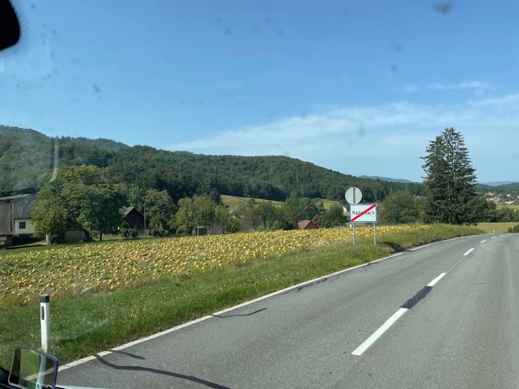 Aber uns reichten die zwei Nächte auf diesem Platz und wir machten uns auf den Weg nach Lavamünd. Von der Steiermark nach Kärnten. Während der ganzen Fahrt haben wir immer wieder große Felder mit Sonnenblumen und Kürbis gesehen. Mais wurde überall ebenfalls reichlich angebaut. Die Sonnenblumen waren bereits verwelkt und den Anblick wollte ich nicht fotografien. Allerdings hatte ich alle Tage vergessen, dass ich ein Kürbisfeld verewigen wollte. Bevor wir nun die Gegend verließen, die für Kürbiskernöl berühmt ist, habe ich zumindest während der Fahrt Bilder gemacht.