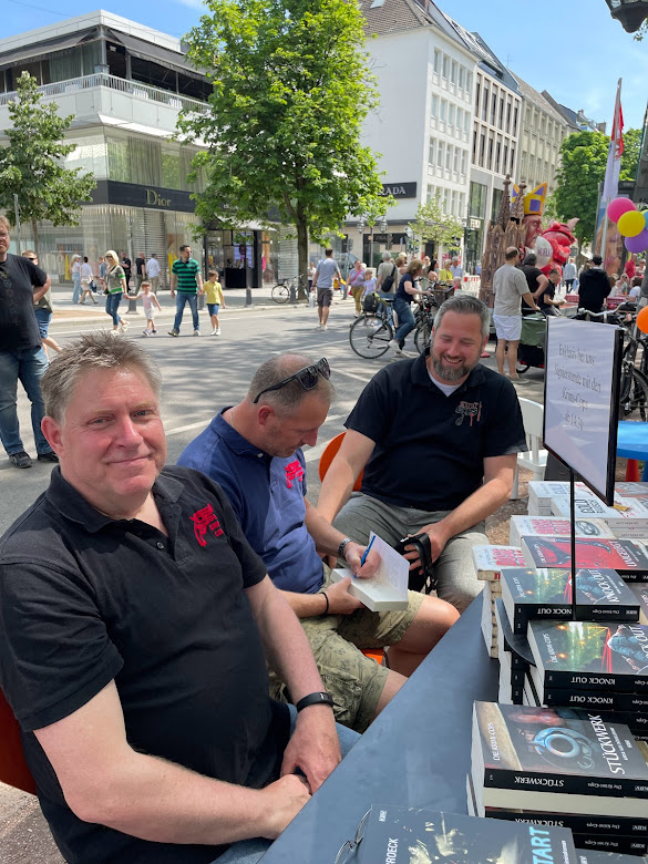 Drei der fünf Krimi-Cops, nämlich Klaus Stickelbroeck, Ingo Hoffmann und Carsten Rösler habe ich eine Weile beim Arbeiten zugesehen und mich dann vom Bücherbummel verabschiedet.