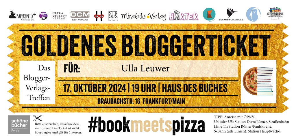 Ich hatte eine Einladung zum Blogger-Verlags-Treffen #bookmeetspizza erhalten. Dies sollte im Haus des Buches stattfinden. Zehn Verlage konnten sich und einige ihrer Bücher vielen interessierten Bloggerinnen und Bloggern vorstellen. Danach konnten wir uns mit einer Pizza stärken und Gespräche führen. Natürlich habe ich mich mit vielen unterhalten, ob nun Verleger oder Blogger, es ergeben sich immer interessante Gespräche. Wenn ich hier nun auf alle Verlage und Bücher eingehen würde, könnte es den Rahmen des Messeberichtes sprengen und deshalb gibt es auch hierzu diese Bilder, die ich mit freundlicher Genehmigung von Jens Korch verwenden darf: