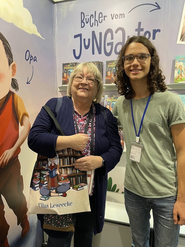 Der erste Tag endete somit spät, aber großartig. Auch in den zweiten Tag konnte ich ganz entspannt starten. Als erstes habe ich den Stand mit dem jüngsten Autor der Messe aufgesucht. Mika Bluhm ist erst 16 Jahre alt und hat zwei wunderbare Bücher herausgebracht, denen ich auf keinen Fall widerstehen konnte. Denn auch in meinem Alter erfreue ich mich an gut illustrierten Kinderbüchern. Sobald ich sie gelesen habe, werde ich einen entsprechenden Beitrag dazu schreiben.