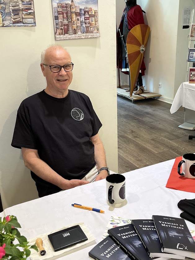 Jörg Manz steht in den Startlöchern zu seinem zweiten Krimi. Den ersten „Vermisst in Mettmann“ einen Neandertal-Krimi hat er auf diesem Büchermarkt vorgestellt. Ich habe das Buch bereits gelesen und fand es sehr interessant und spannend, denn die Örtlichkeiten waren mir bekannt.