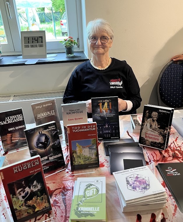 Sibyl Quinke ist ebenfalls sehr vielseitig unterwegs. Sie mordet gerne mit Gift, egal ob in „dicken“ Büchern oder in Kurzgeschichten. Sie ist mit ihren Geschichten in vielen Anthologien vertreten, allerdings auch selbst als Herausgeberin tätig.