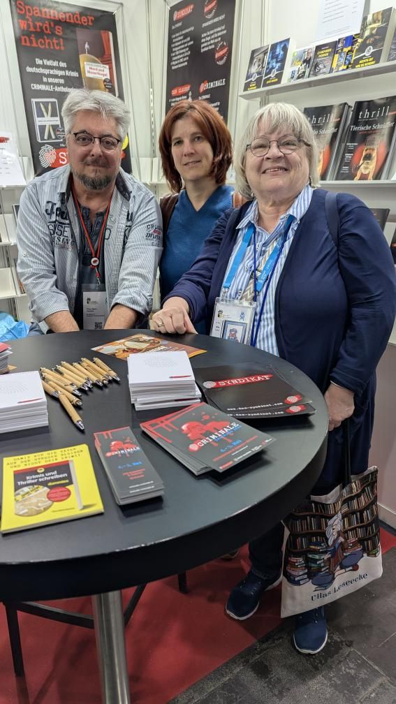 Am Stand der Mörderischen Schwestern und des Syndikats habe ich so viele Autorinnen und Autoren getroffen, die ich hier namentlich nicht aufführen kann, weil ich leicht die Übersicht verloren habe. Aber alle habe ich mit Freuden begrüßt und das ist doch die Hauptsache.