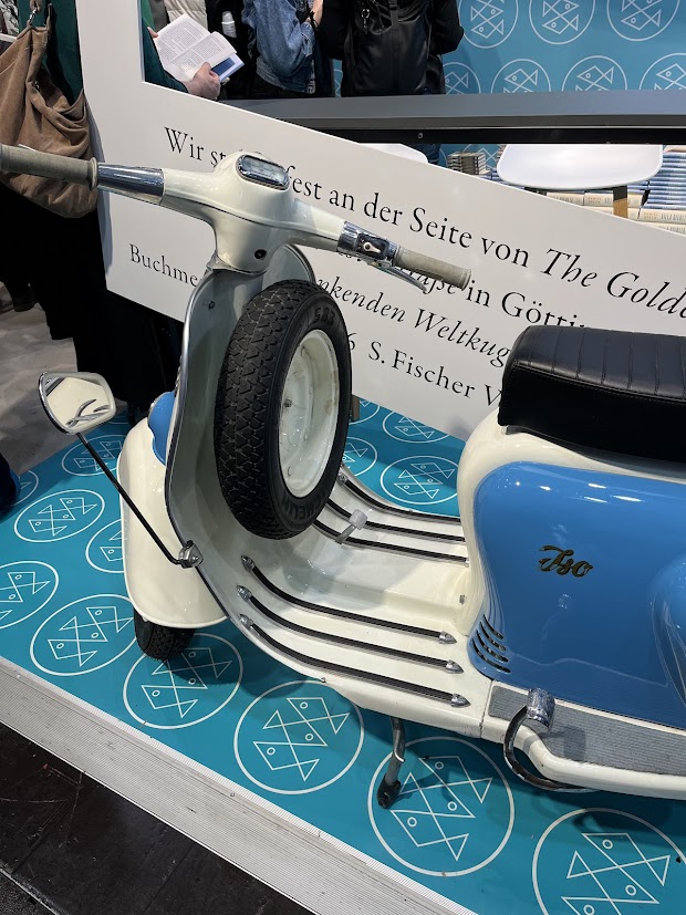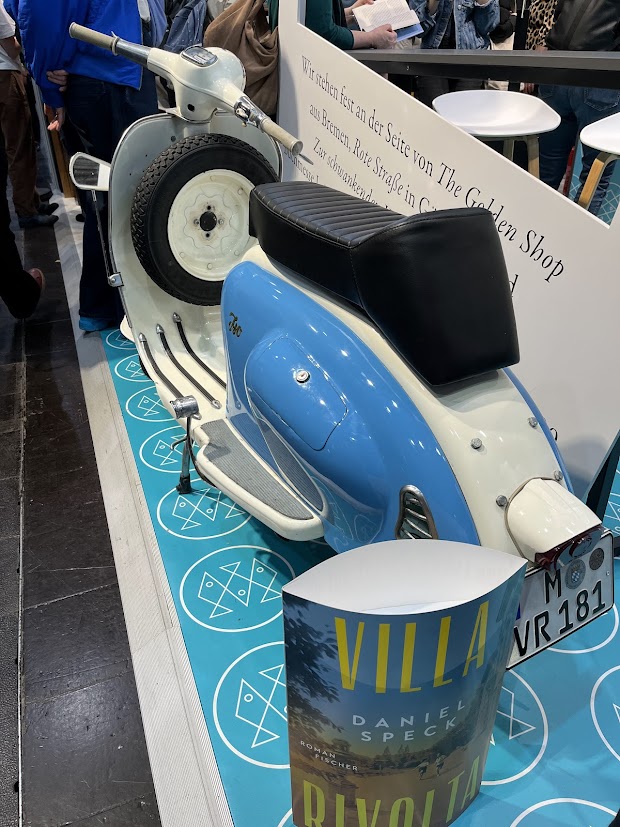 In Leipzig gibt es einen Blogger-Room, kurz auch BL:OOM genannt, dort wurden verschiedene Veranstaltungen angeboten. Ich hatte eine Einladung zur Veranstaltung „Meet the Author – Literatur: Daniel Speck über Villa Rivolta“ die ich gerne wahrgenommen habe. Denn ich hatte kurz vor der Messe das Buch gelesen und war nun gespannt, was der Autor dazu erzählen wird. Es war sehr informativ und nebenbei erfuhr ich, dass am nächsten Tag vom Stand des Fischer Verlages ein Iso zu sehen ist, auf dem die Protagonistin durch die Gegend fuhr. Ich wollte mir das natürlich ansehen und am nächsten Tag dahin gehen.