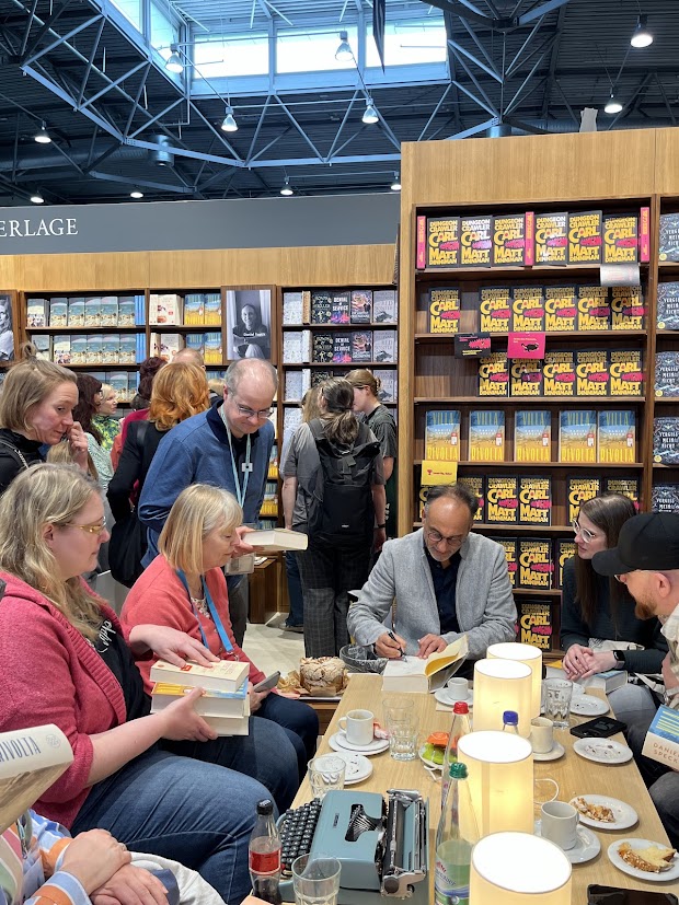 Mit Terminen habe ich mich in diesem Jahr etwas zurückgehalten, weil ich eigentlich auch mal in Ruhe durch die Hallen schlendern und einfach bei einigen Verlagen „Hallo“ sagen wollte. Unterwegs traf ich dann auch rein zufällig Autorinnen und Autoren, mit denen ich an der Stelle nicht gerechnet hatte. Nun gehöre ich auch nicht zu den Leuten, die sofort immer ihr Handy für ein Bild zücken und deshalb gibt es viele Begegnungen ohne Bild, die aber nicht weniger herzlich ausfielen.