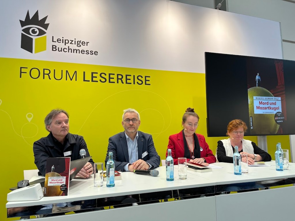 Mein letzter Programmpunkt auf der Messe war dann die Buchvorstellung „Mord und Mozartkugel“ Eine Kurzgeschichtensammlung, die vom Gmeiner Verlag anlässlich der anstehenden Criminale in Salzburg herausgegeben wurde. Im vergangenen Jahr habe ich mich auf dem Weg nach Schwetzingen gemacht, um an der Criminale irgendwie teilnehmen zu können. Da mir der Weg nach Salzburg aber doch etwas zu weit ist, freue ich mich, dass ich das Buch inzwischen zu Hause habe.