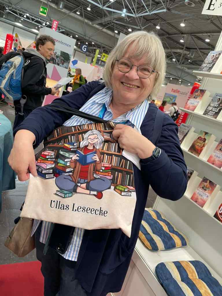Die Autorin Jana Beck und der Autor Michael Kress teilen sich schon seit Jahren einen Stand und ich besuche sie natürlich immer gerne. In diesem Jahr hat sich ihnen ein dritter Autor, nämlich Stefan Heiligtag angeschlossen. Dort wurden einige Bilder gemacht, leider nicht mit meinem Handy, aber Jana hat mir ihre Bilder inzwischen zukommen lassen. Meine Tasche hat sie dort beeindruckt 😉