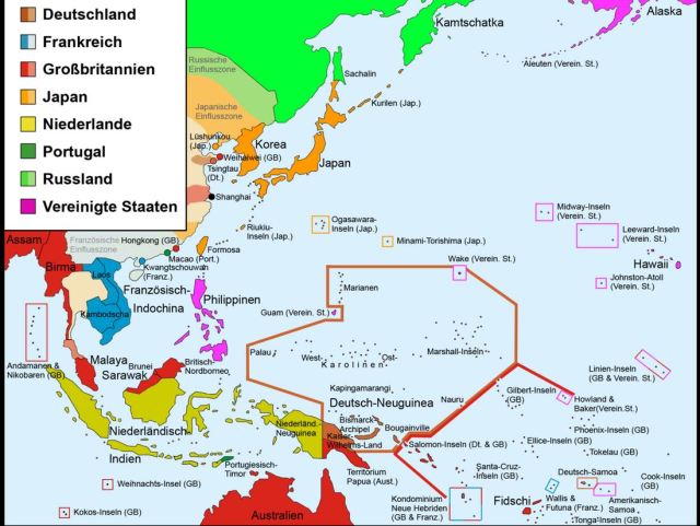 Sie waren zwar weit weg vom Kaiser, aber sein Arm und seine Politik waren auch dort noch zu spüren. Wenn ich das nächste Bild betrachte, dann ist mir auch klar, warum dort die Auswirkungen des Krieges zu spüren waren. \“Deutsch-Samoa\“ war umgeben von den Kolonien vieler Länder.