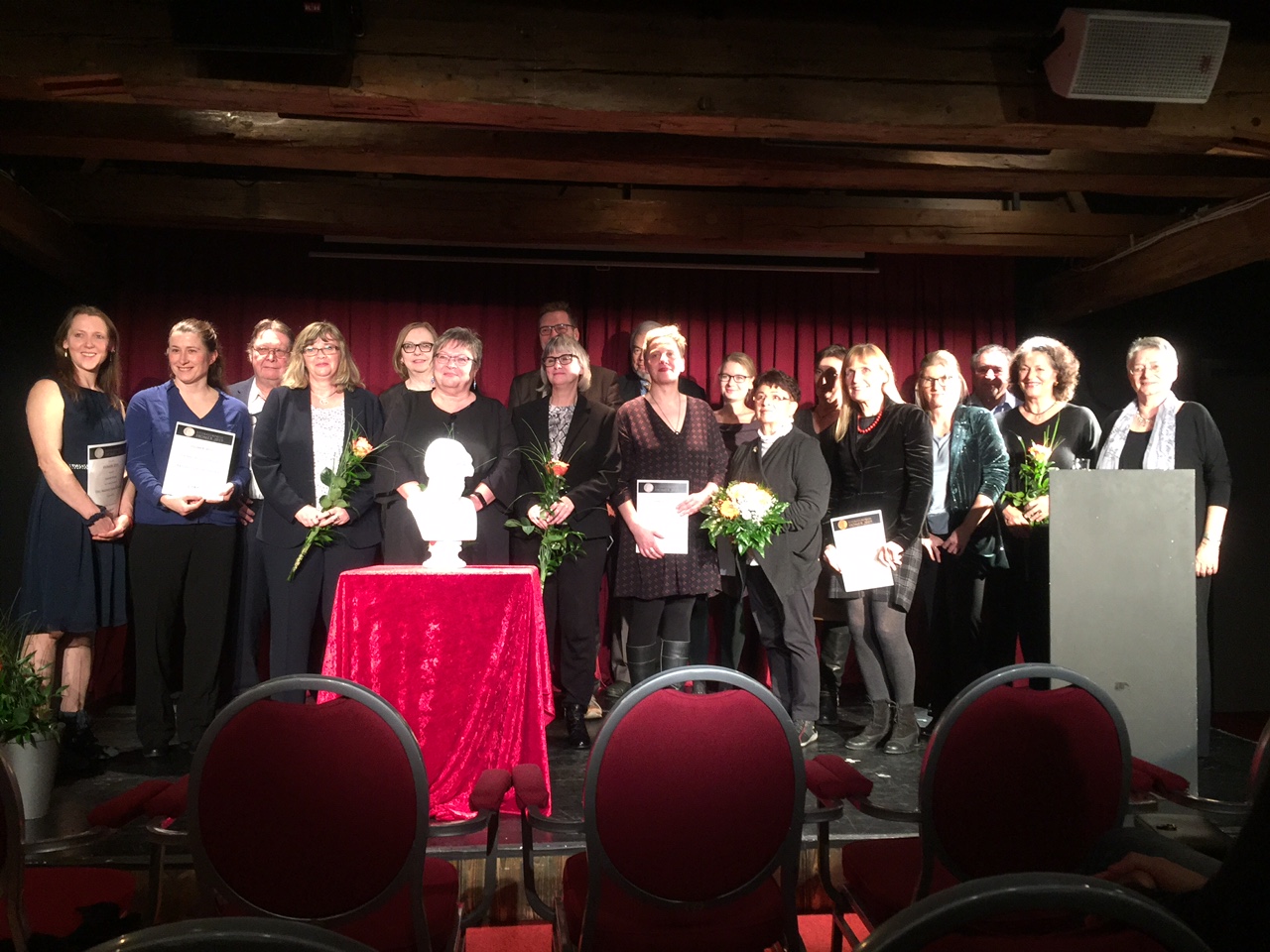Wie es bei Überreichungen von Preisen üblich ist, wurde mit dem dritten Platz begonnen, aber ohje, der Moderatur verkündete vorab den Namen der Gewinnerin! Hilfe, wenn er das bei mir auch machen würde, dann könnte ich meine Laudatio, so wie ich sie geschrieben hatte, vergessen.