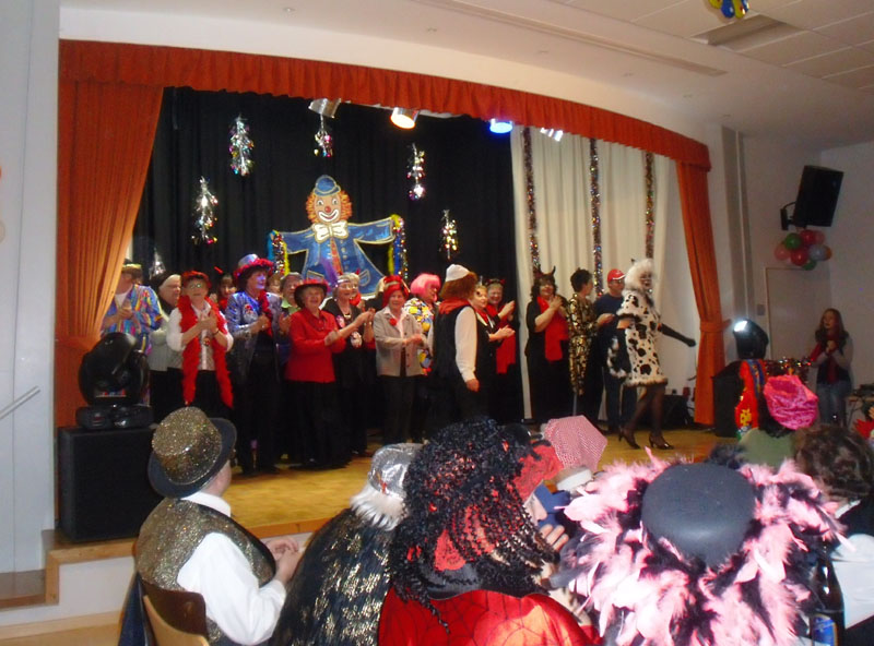 Wochenlang wird vorher überlegt, geprobt und geplant und dann vergeht die Zeit wie im Fluge. In diesem Jahr haben wir einen Sketch gebracht, nach dem Motto: \“Zimmer frei – Frauen bieten ein Zuhause\“ Ich als Moderator hatte vier Kandidatinnen, die auf diesem Wege einen Mann kennen lernten wollten. Es war sehr lustig, weil immer das Gegenteil ihrer Wünsche/Träume auf die Bühne kam. Zum Schluss des Sketches haben wir wieder getanzt und damit viele Zuschauer, am meisten am Freitag, von den Stühlen gerissen.